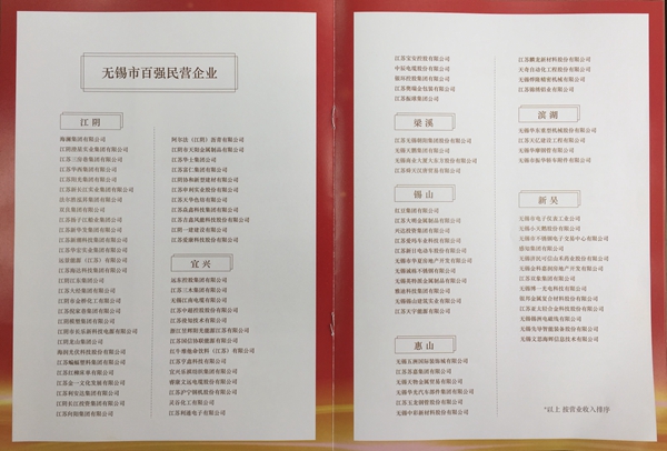 9月22日上午,第三屆全球錫商大會在無錫市太湖飯店隆重召開。全球錫商大會是凝聚錫商力量、展示錫商形象、弘揚錫商精神、促進(jìn)錫商發(fā)展、擦亮錫商品牌的重要平臺。會上,發(fā)布了無錫市百強(qiáng)民營企業(yè)和無錫市杰出錫商人物。公司依靠卓越的經(jīng)營業(yè)績和創(chuàng)新的管理模式成功位列無錫市百強(qiáng)民營企業(yè),成為錫山區(qū)入選的十一家企業(yè)之一。同時,公司董事長王永良憑借出色的經(jīng)營理念也被授予無錫市百名錫商人物。